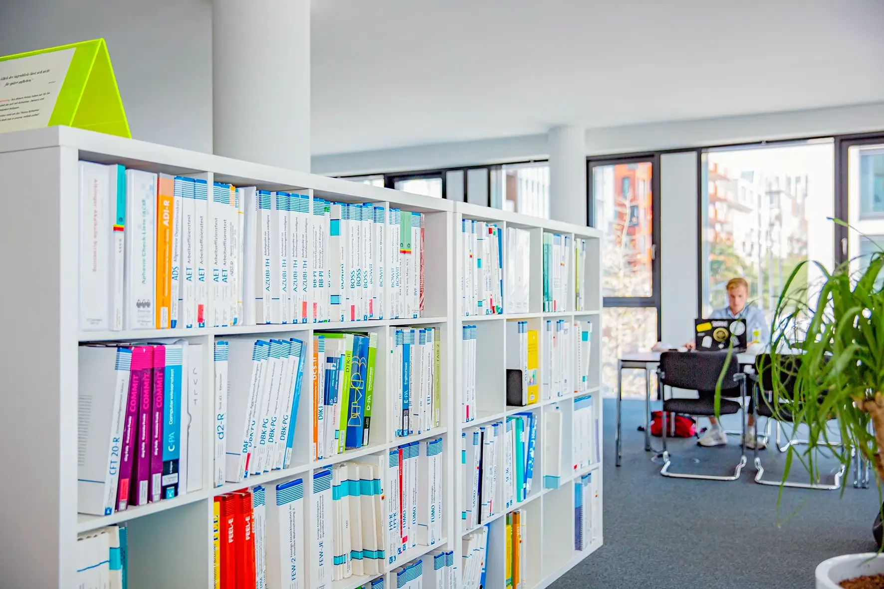 Zum Lernen und Arbeiten können die Arbeitsplätze in der Bibliothek genutzt werden.