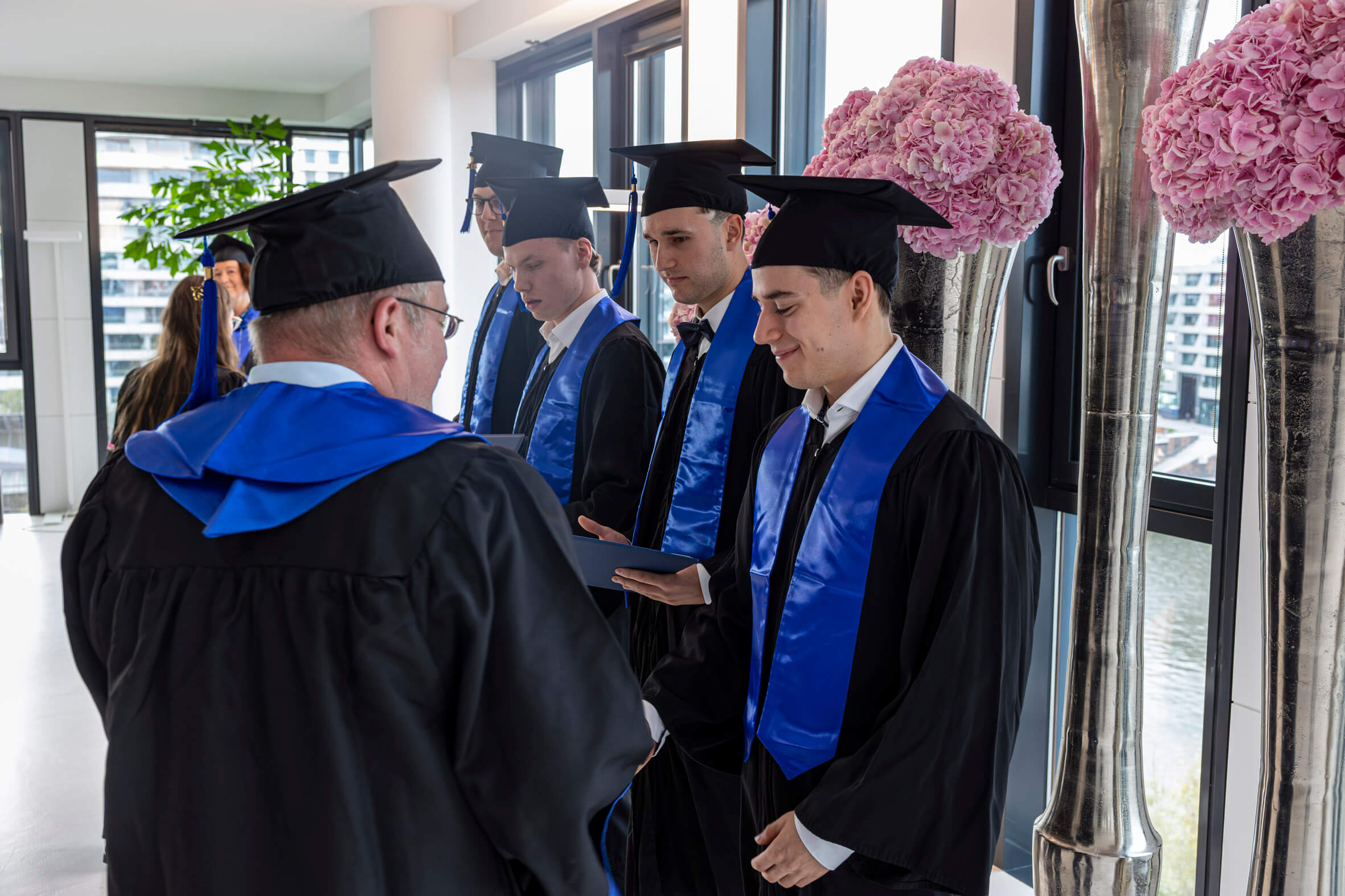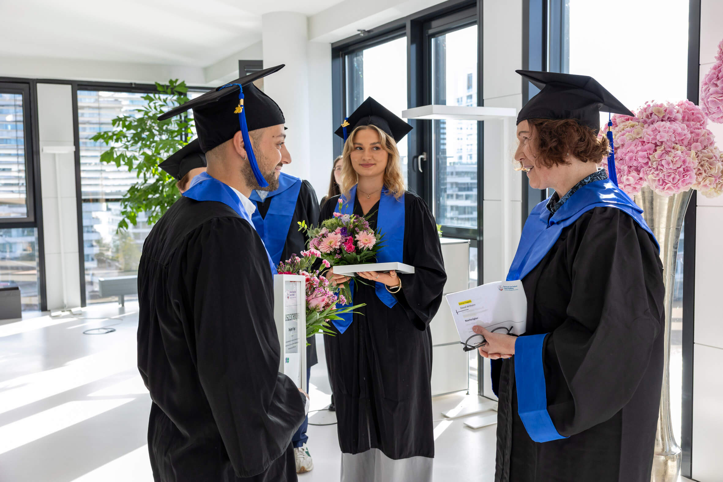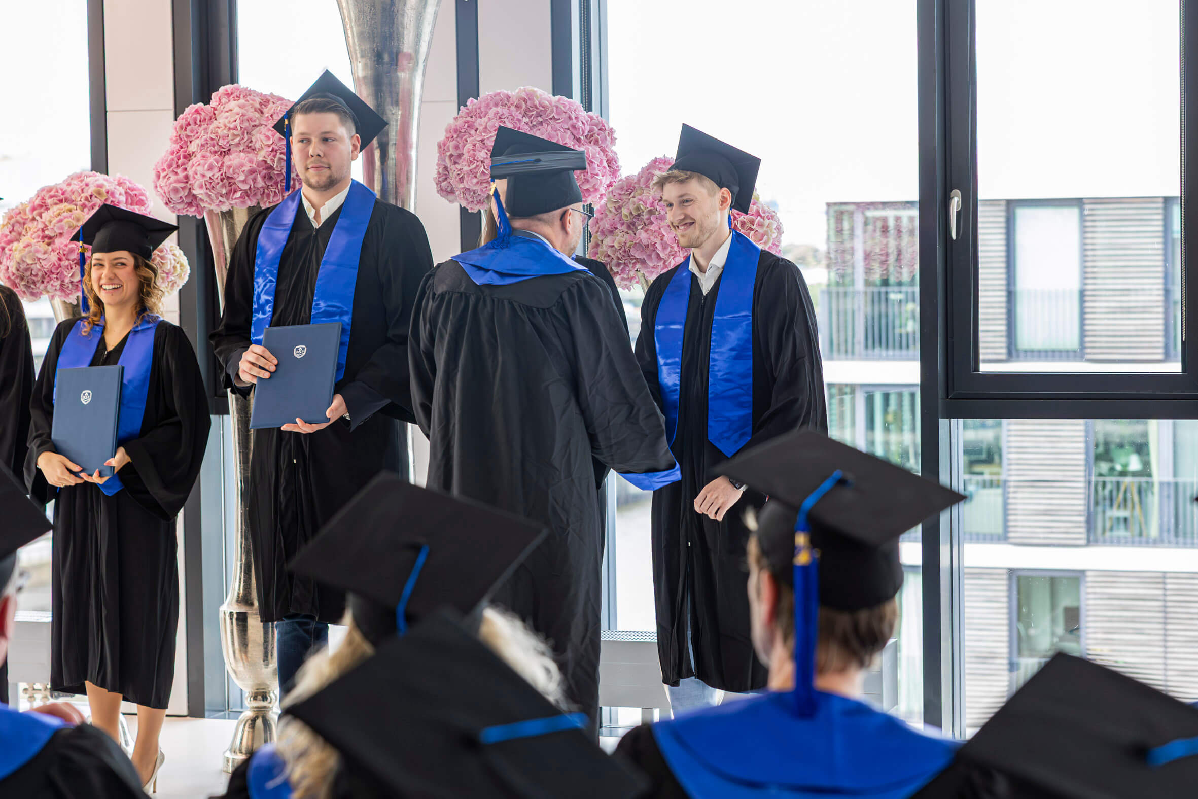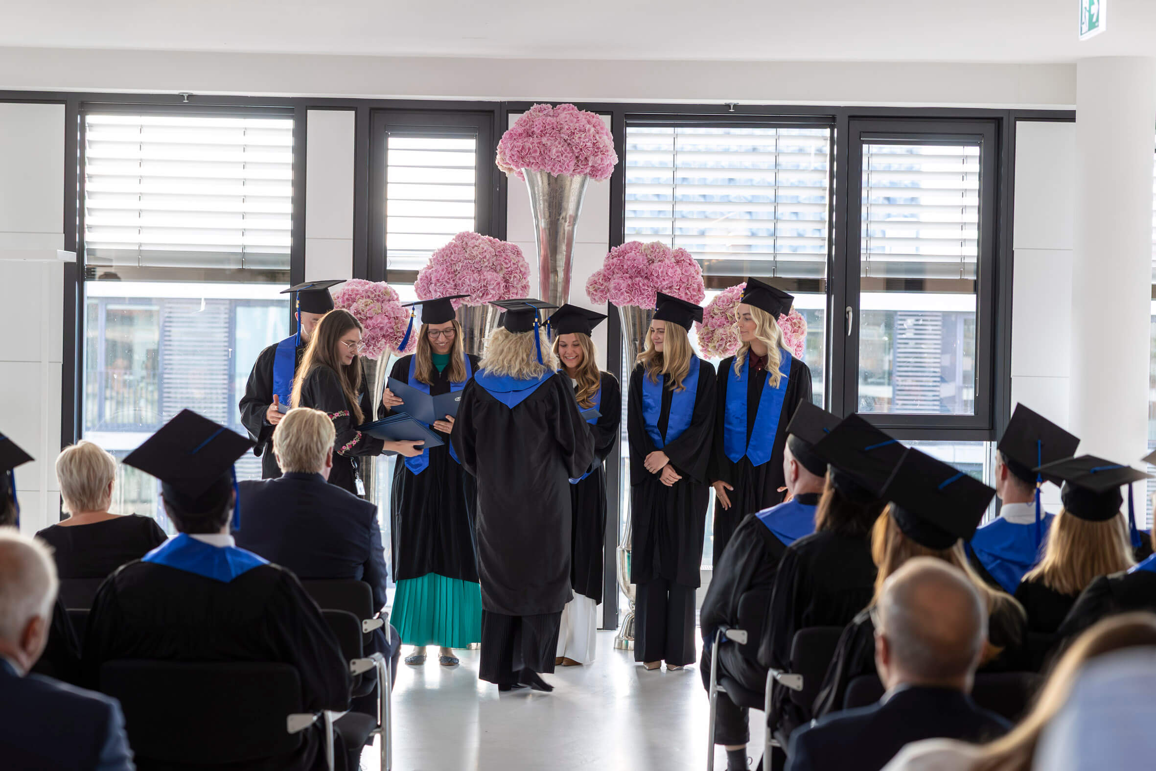 In feierlicher Atmosphäre und im kleinen Kreis haben wir gemeinsam mit unseren Absolventinnen und Absolventen ihren erfolgreichen Studienabschluss gefeiert. Wir wünschen ihnen für die Zukunft alles Gute und hoffen, dass sie ihre Studienzeit in bester Erinnerung behalten.
