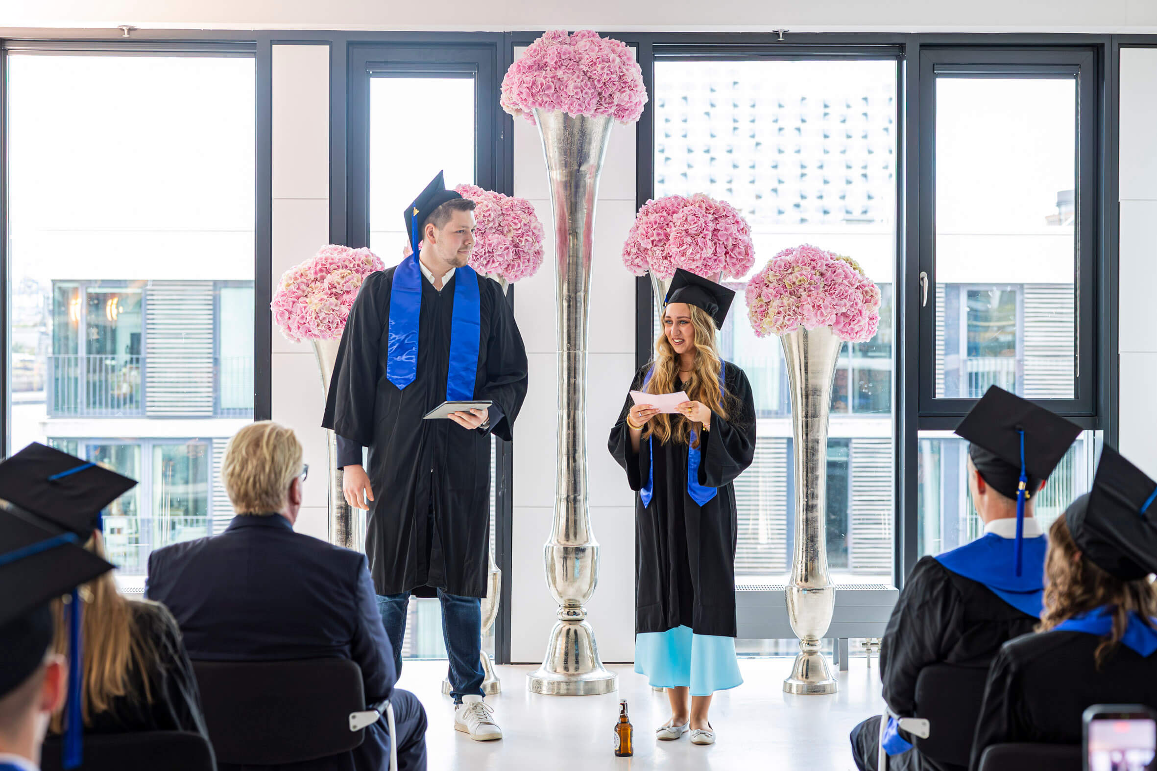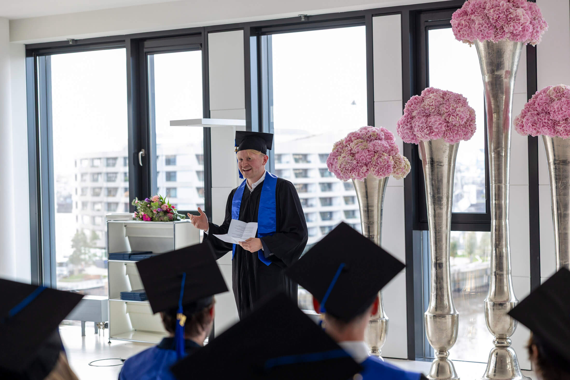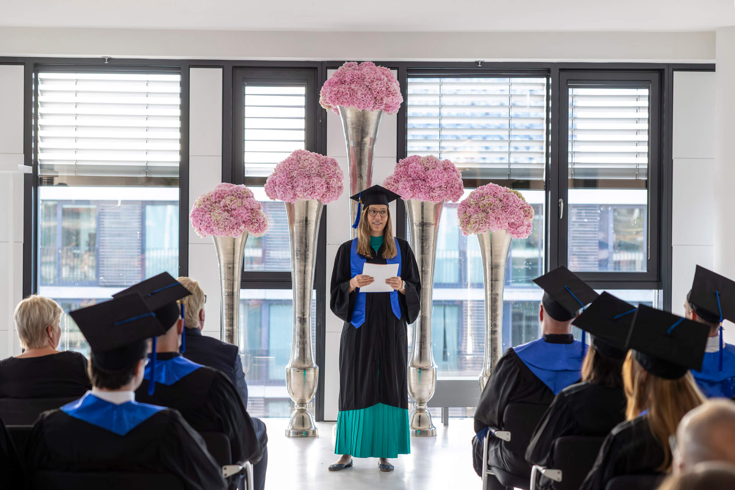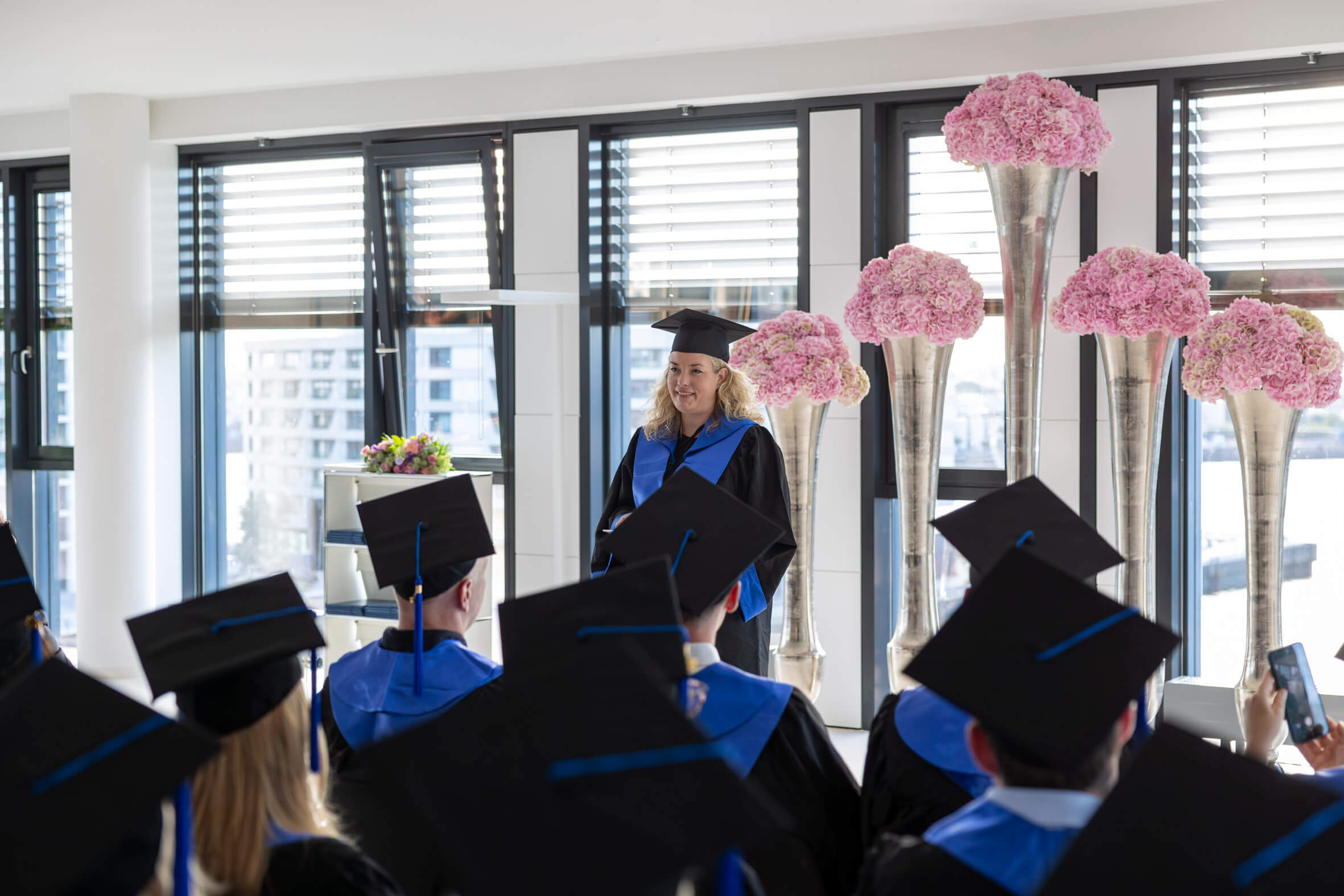 In feierlicher Atmosphäre und im kleinen Kreis haben wir gemeinsam mit unseren Absolventinnen und Absolventen ihren erfolgreichen Studienabschluss gefeiert. Wir wünschen ihnen für die Zukunft alles Gute und hoffen, dass sie ihre Studienzeit in bester Erinnerung behalten.