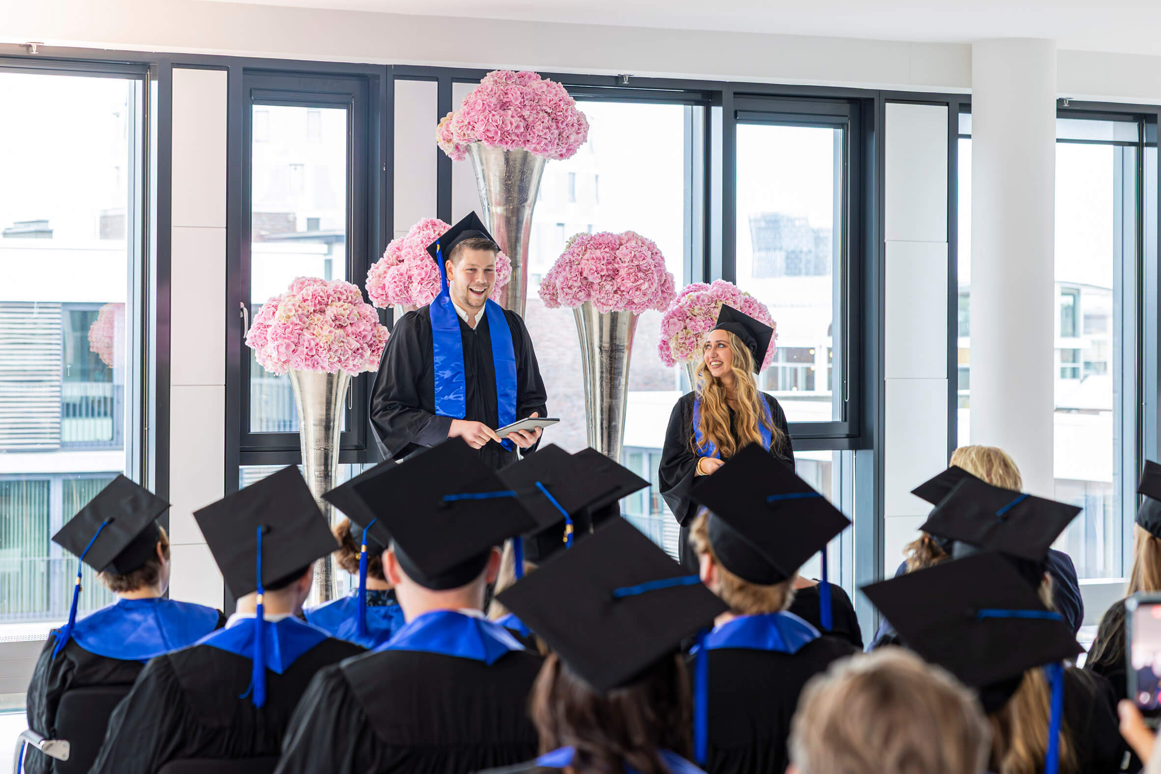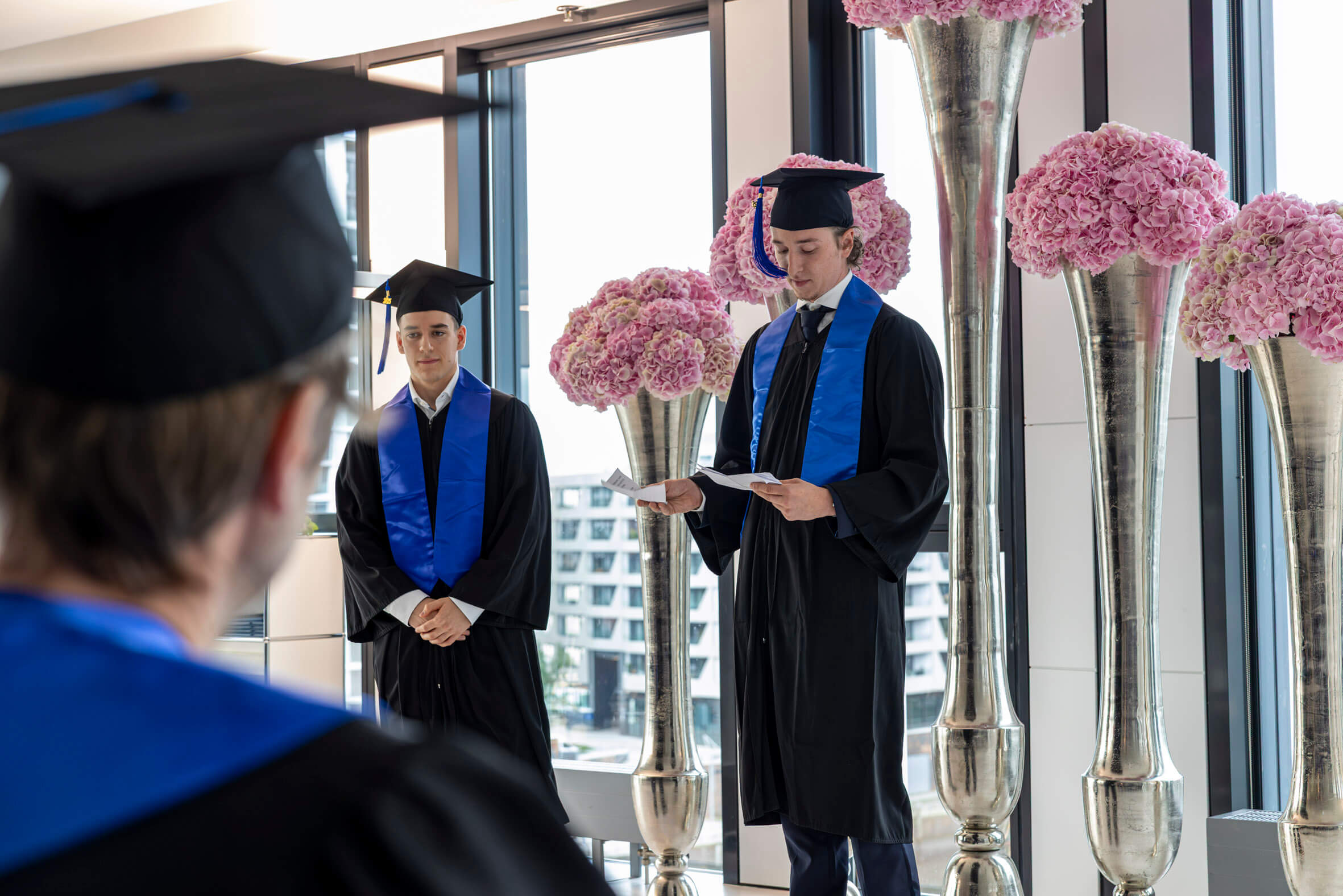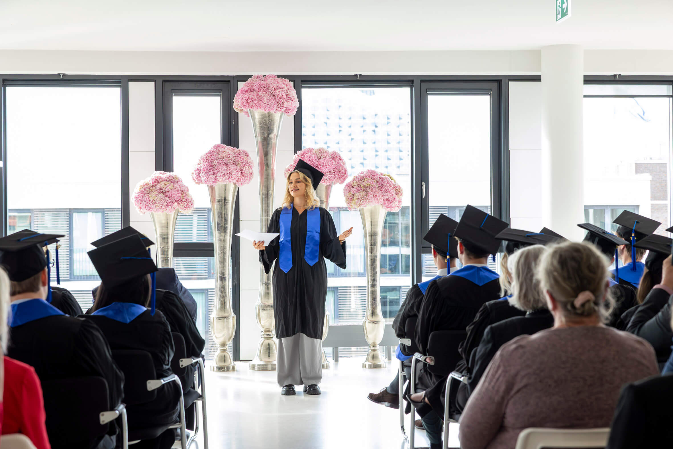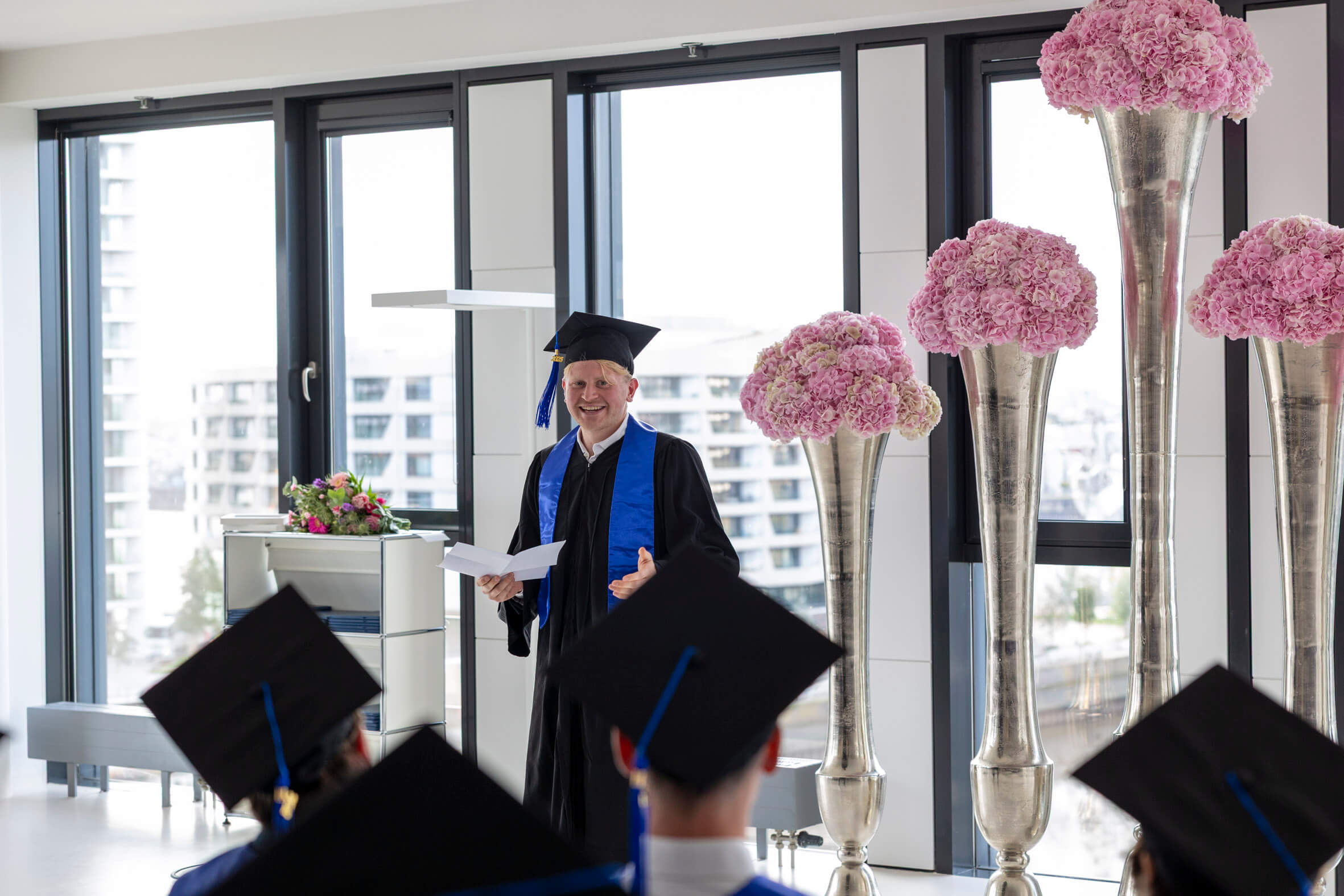 In feierlicher Atmosphäre und im kleinen Kreis haben wir gemeinsam mit unseren Absolventinnen und Absolventen ihren erfolgreichen Studienabschluss gefeiert. Wir wünschen ihnen für die Zukunft alles Gute und hoffen, dass sie ihre Studienzeit in bester Erinnerung behalten.