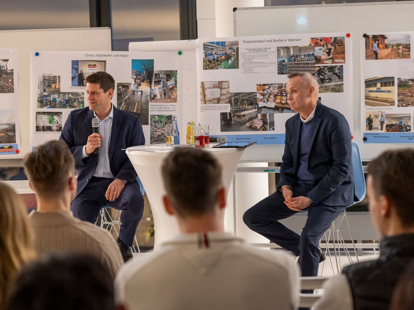 - Ein spannendes und inspirierendes Gespräch mit und für unsere Studierenden. Herr Hartwich öffnete sogar sein privates Fotoalbum und brachte Aufnahmen von ihm und seiner Familie mit, vor den unterschiedlichen globalen Produktionsstandorten, um auf die teils verheerenden Situationen aufmerksam zu machen.