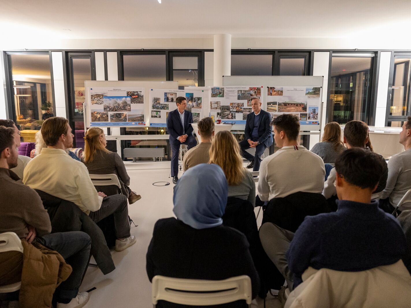 Zum Harbourside Chat war die schöne BSP Campus Hamburg Lounge mit über 80 Studierenden bis auf den letzten Platz gefüllt und die Studierenden diskutierten mit Herrn Hartwich, und Prof. Dr. Daniel Horgos, der den Chat moderierte, darüber, was es heißt, in Zeiten der Globalisierung unternehmerische Verantwortung zu übernehmen.