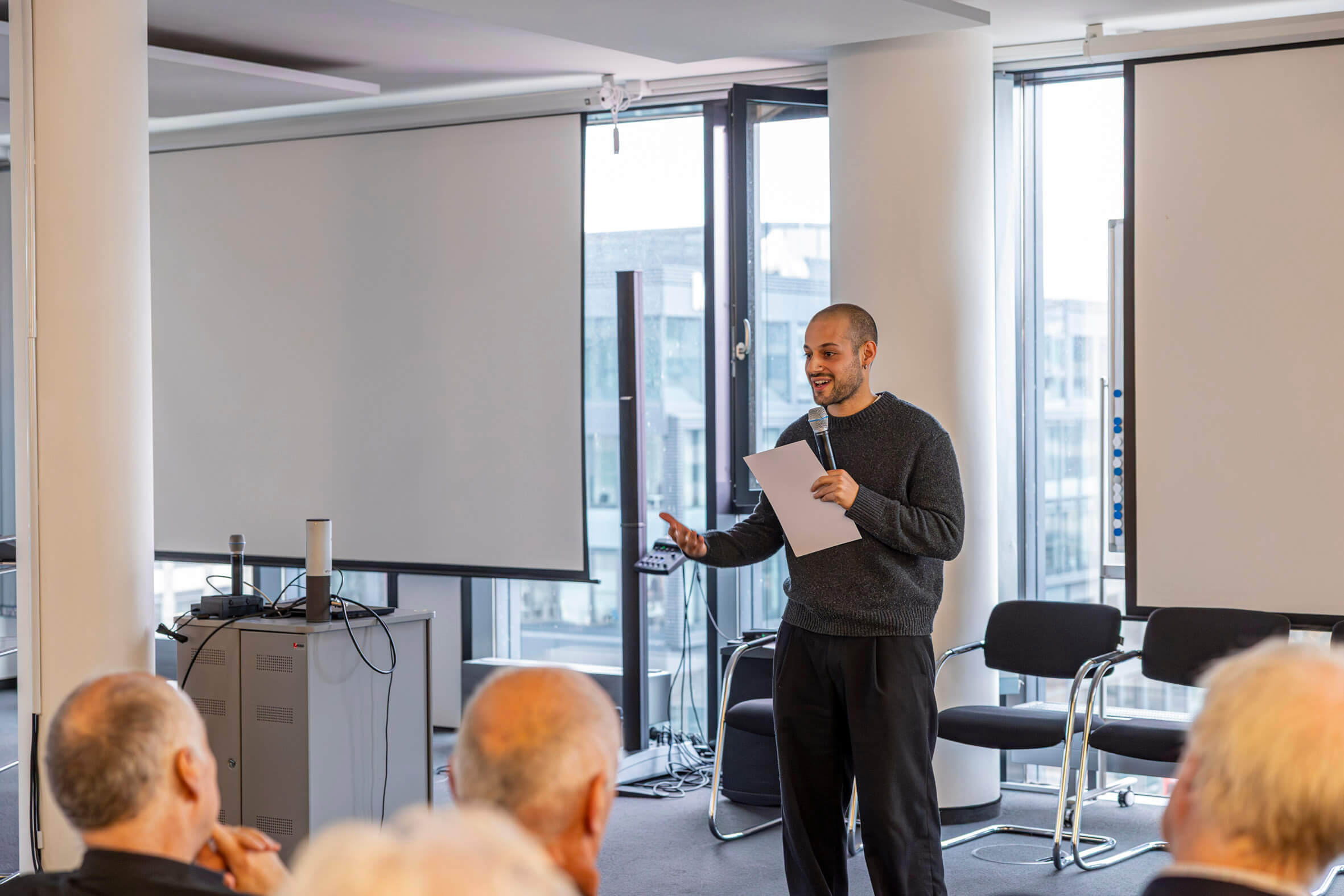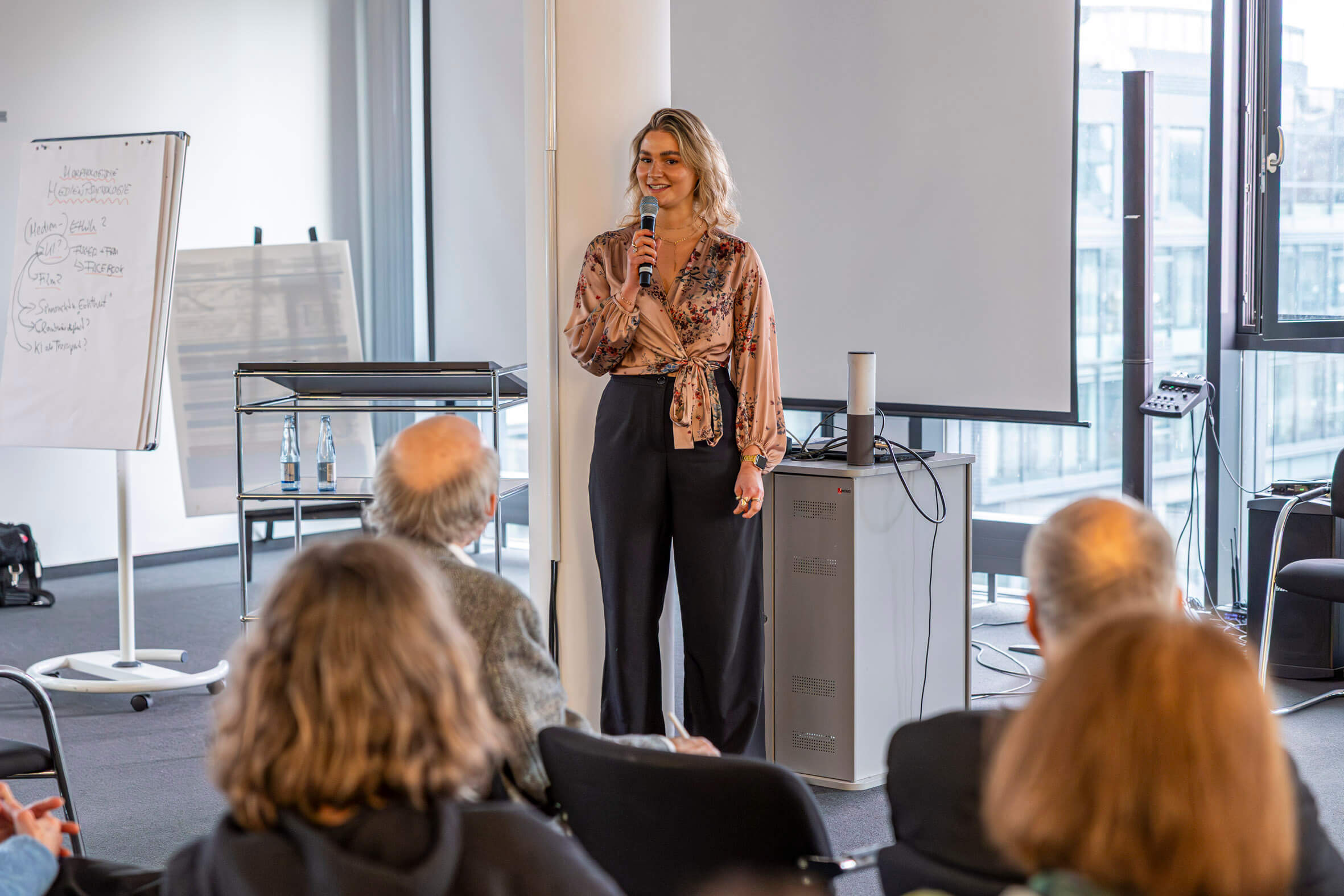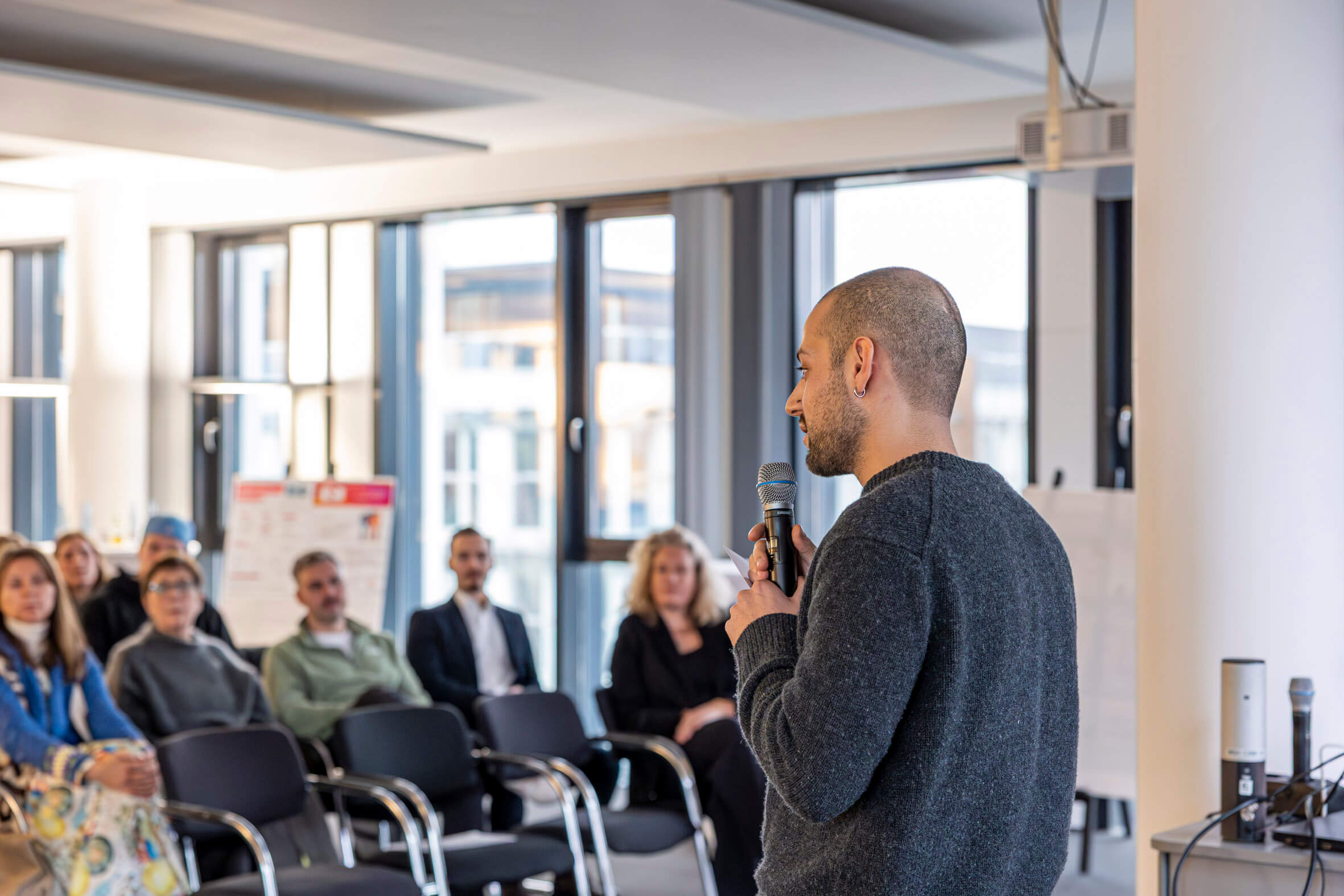 Im anschließenden World-M-Café »Morphologie in der Praxis« wurde ein interaktiver Parcours umgesetzt mit sieben thematischen Stationen, an denen sich Studierende, Alumni und erfahrene Morpholog:innen begegnen. Im Mittelpunkt stand der Austausch über die besonderen Chancen, Methoden und Herausforderungen der morphologischen Praxis. Es luden zum Gespräch und zum Netzwerken ein: an den Stationen (1-3) Marketing- & Marktpsychologie Dirk Ziems und Thomas Ebenfeld (concept m) & Leonard Engler (BSP) sowie Selina Wolf (BSP), Dr. Sven Giebel (QUES) & Valerian Warmuth (BSP) sowie Nicole Hanisch (innersense) & Prof. Dr. Susan Hinterding (BSP), an der Station (4) Medienpsychologie Prof. Dr. Björn Zwingmann (BSP), Prof. Dr. Dirk Blothner (WSG). Prof. Dr. Johanna Hodde (BSP) und Verena Tiedau (BSP), an der Station (5) Organisationspsychologie Franz Arnold (Evolog) & Jakob Mair (BSP), an der Station (6) Sportpsychologie Florian Schwalb (BSP) und Jannick Everding (BSP) sowie an der Station (7) Intensivberatung Prof. Dr. Herbert Fitzek (BSP) & Doris Bartholomäi-Post (WGI). In zwei interaktiven Sessions à 45 Minuten mit anschließendem Recap wurden die besonderen Chancen und Herausforderungen der Morphologischen Psychologie in den unterschiedlichen Anwendungsfelder bearbeitet.